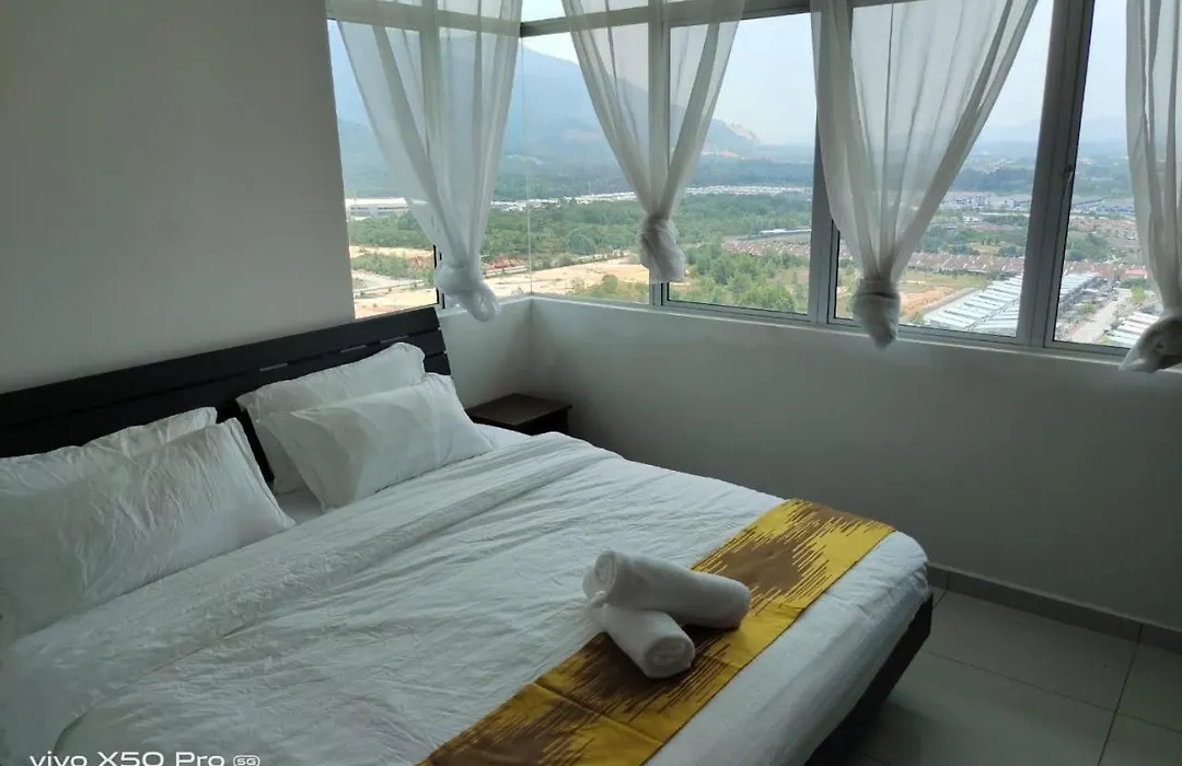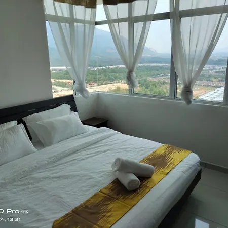 Ensuring ultimate comfort, a balcony and a dressing area are equipped with a TV set, as well as ironing facilities and climate control. The apartment is also furnished with a sofa set and a work desk. Residensi Meru Raya apartment offers guests the convenient feature of hair dryers and bath sheets in the bathroom. Furthermore, a bidet, a separate toilet, and a shower is available.